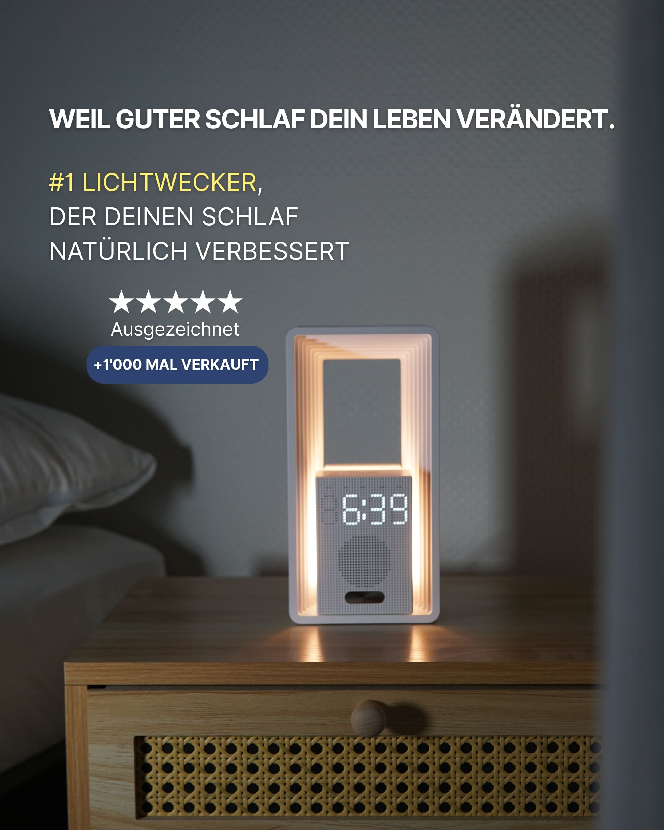 Unsere minimalistischen, smarten Lichtwecker helfen dir, leichter abzuschalten, besser zu schlafen und natürlich aufzuwachen.